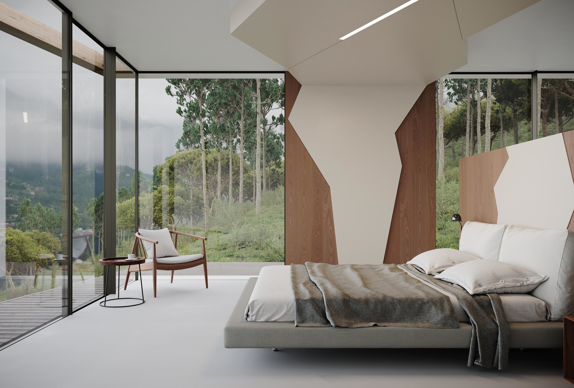A contemporary architecture project defined by modern lines, expansive glazed surfaces, and a seamless connection between indoor and outdoor spaces, designed with sustainability in mind.