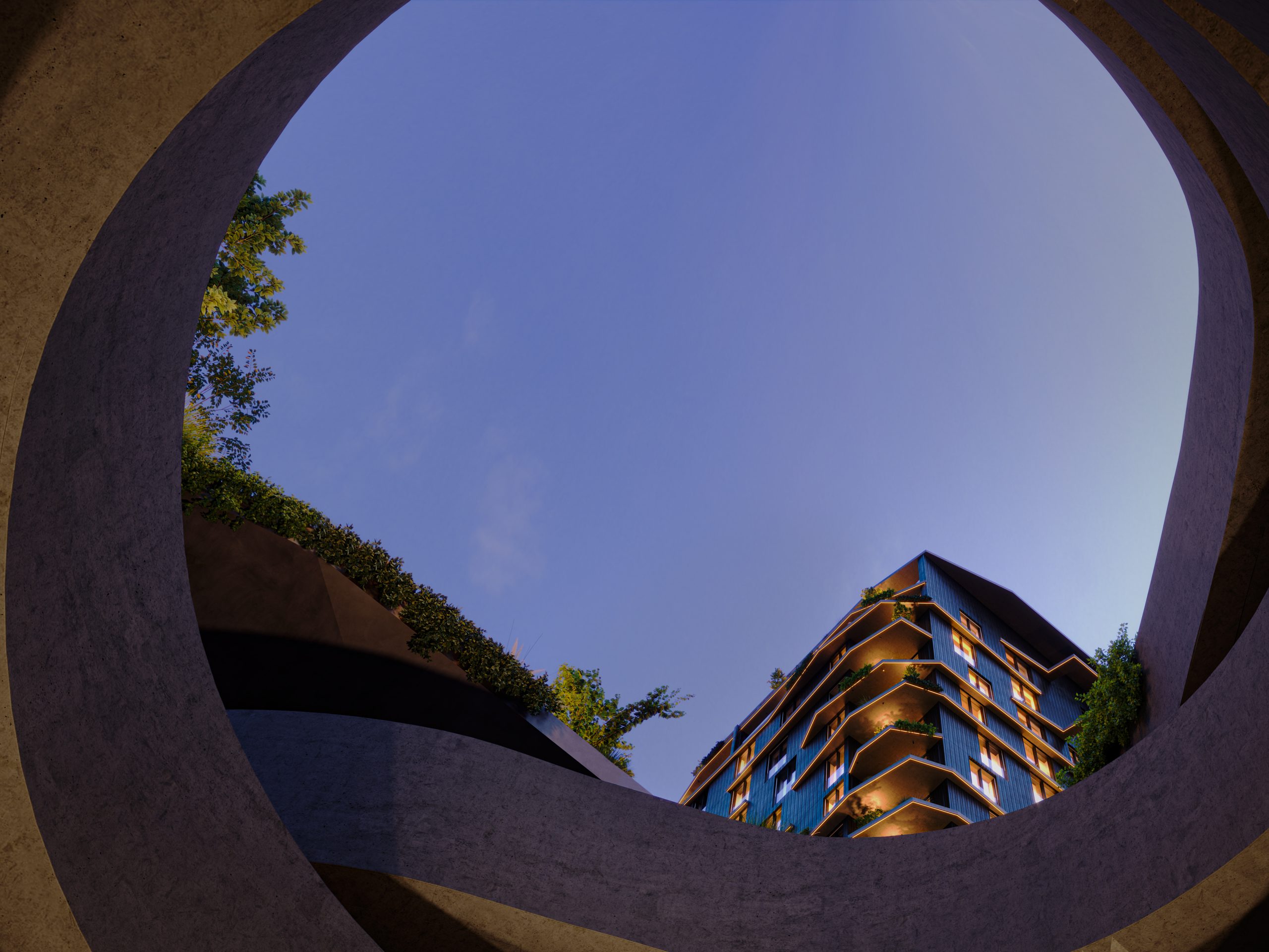 A contemporary architecture project defined by modern lines, expansive glazed surfaces, and a seamless connection between indoor and outdoor spaces, designed with sustainability in mind.