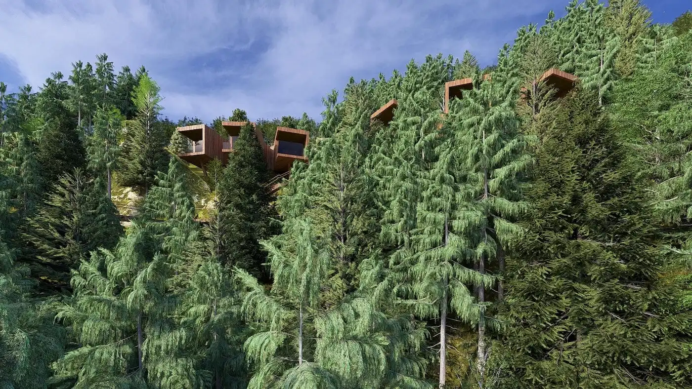 A materialidade dos edifícios permite que os hospedes se conectem com o ambiente, onde a vegetação endêmica, a estrutura de madeira e xisto fazem referência a herança de um património cultural imaterial e ambiental. Pretende-se repor as espécies arbóreas autóctones que foram dizimadas pelos incêndios sendo estas as principais anfitriãs nos percursos que iram ser proporcionados aos hóspedes, desde a casa central até a um conjunto de vilas onde os hóspedes permaneceram durante a sua estadia. Cada unidade de alojamento foi projetada para promover a vida íntima e social. Serão compostas por um quarto, instalação sanitária, área de estar, sala de jantar, cozinha e terraço; Os edifícios estão configurados para maximizar a eficiência, garantindo um diálogo constante entre o espaço interior e a paisagem circundante. O resultado é tornar um edifício permeável onde os limites entre o interior e o exterior se desvanecem, onde as paredes de madeira e xisto se fundem com a paisagem.
